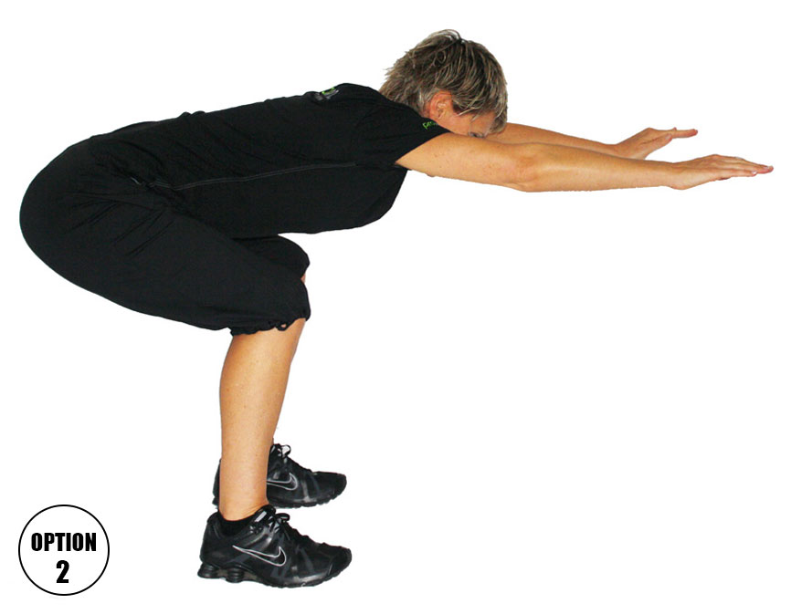 - To get out of squat – look down and roll butt up